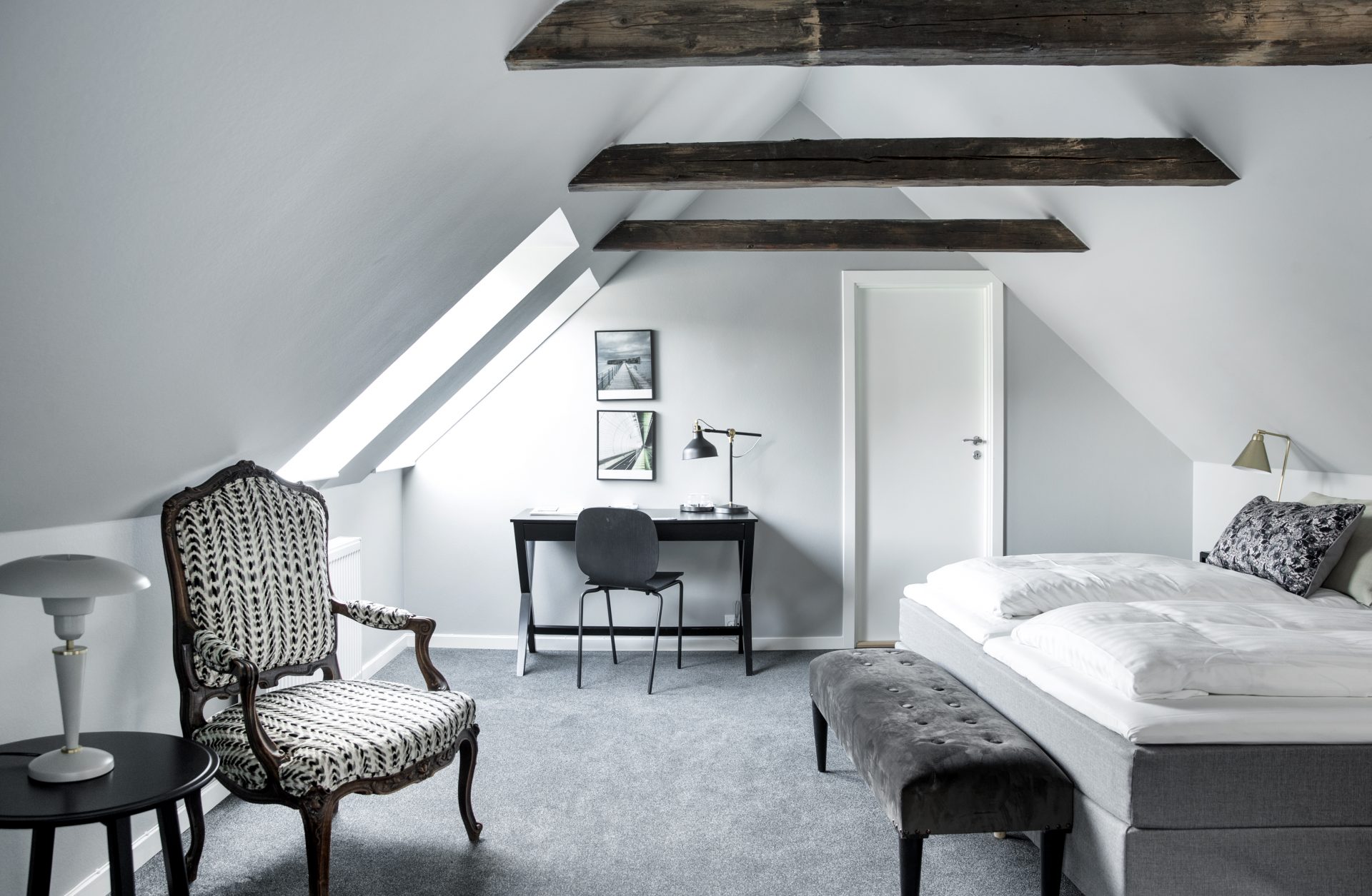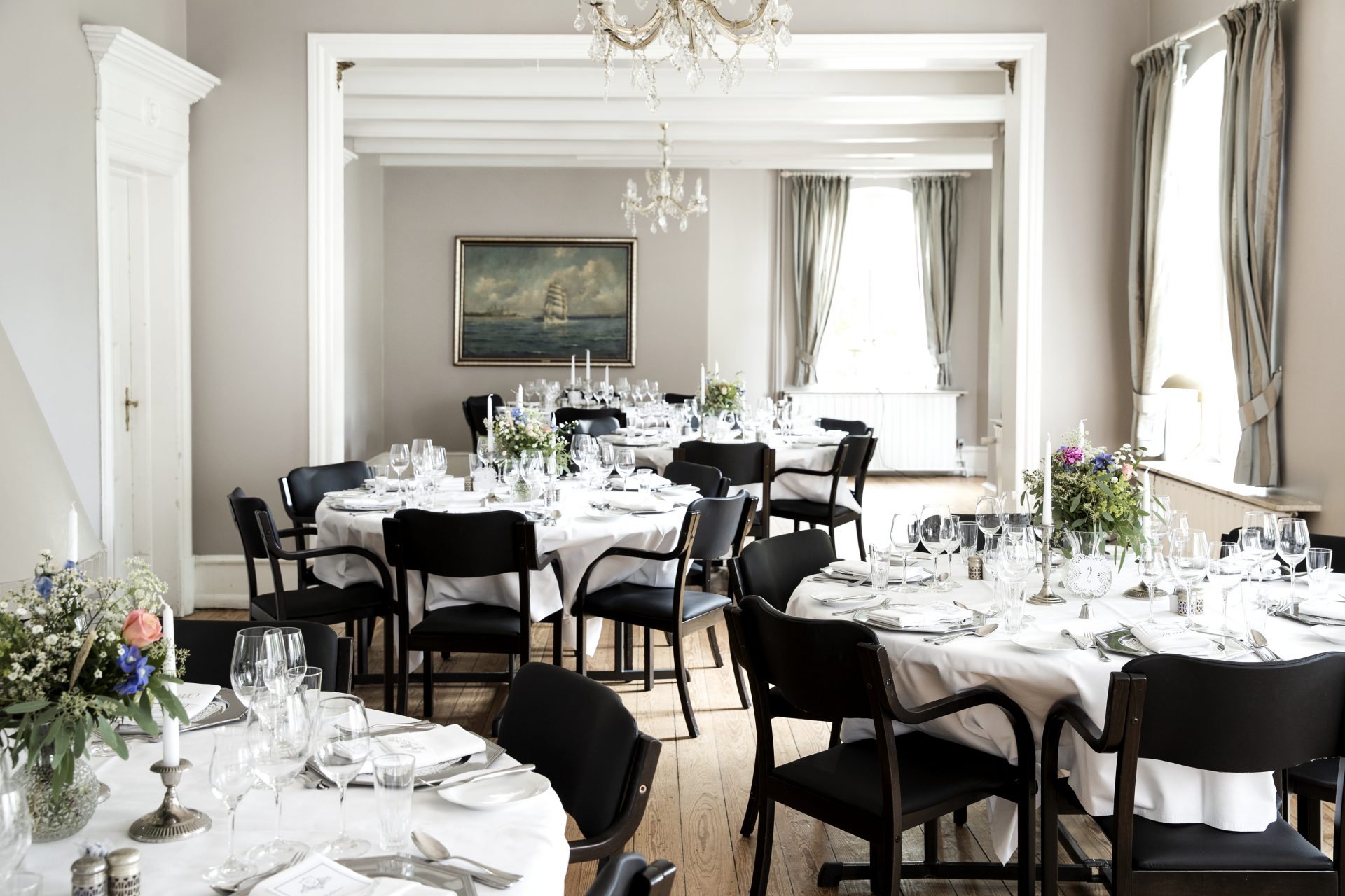 Skjalm Hvide Hotel comprises three charming buildings: the main building with reception, rooms, restaurant, and event spaces; the elegant villa “Slottet” with its ballroom and two luxury suites; and “Købmanden,” offering 10 additional rooms and a spacious event hall.
